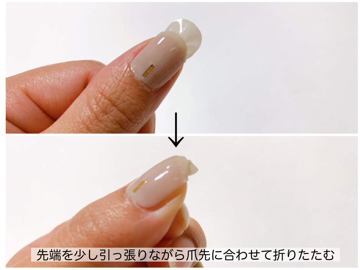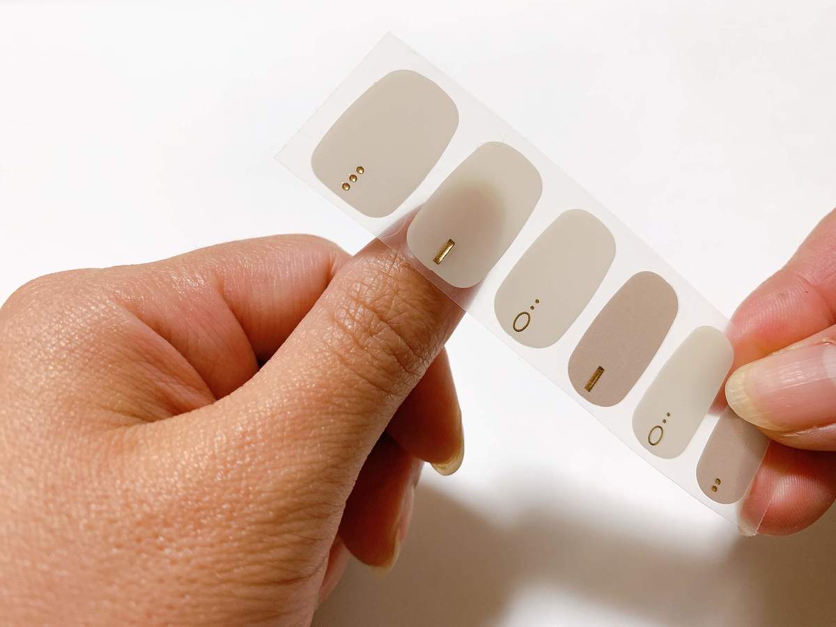 爪よりも大きめだと剥がれやすい原因となる為、ピッタリサイズか爪よりも少し小さめを選んで下さい。