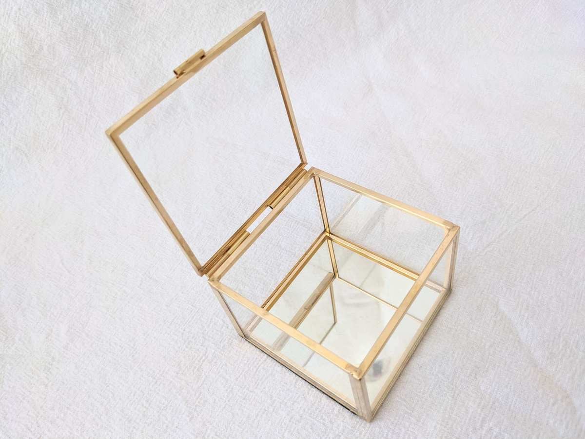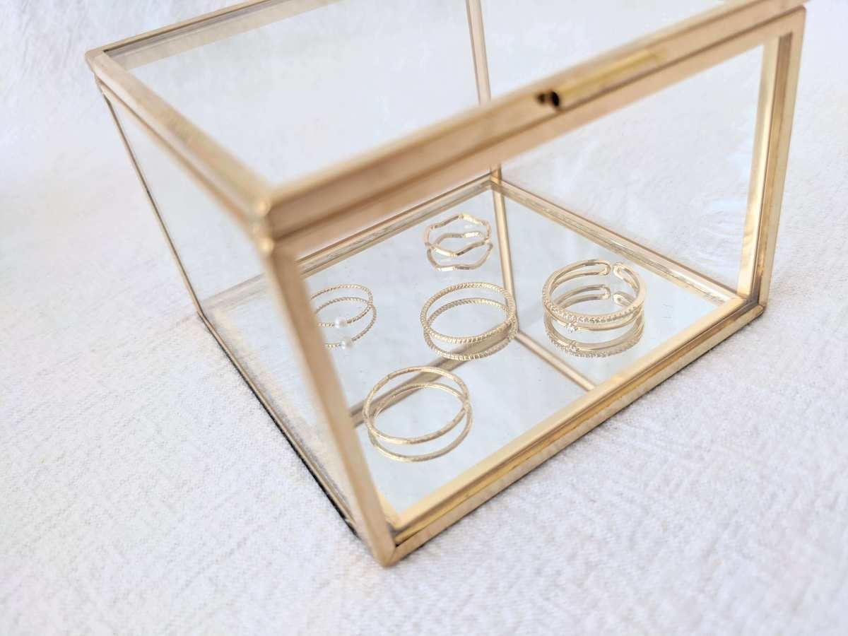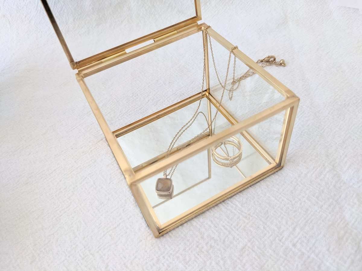 アクセサリーや小物の魅力をより際立たせてくれる「フタ付きガラスケース」。 こちらはスモールサイズで、大きさは約幅8.5cm×奥行き8.5cm×高さ6cm。