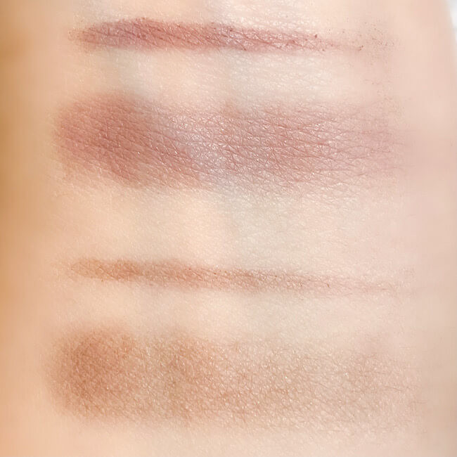 発色はナチュラルで、思ったよりもふんわりとした色味です。一番濃いブラウンも見た目ほど発色は強くないので、色味の調整がしやすそう。