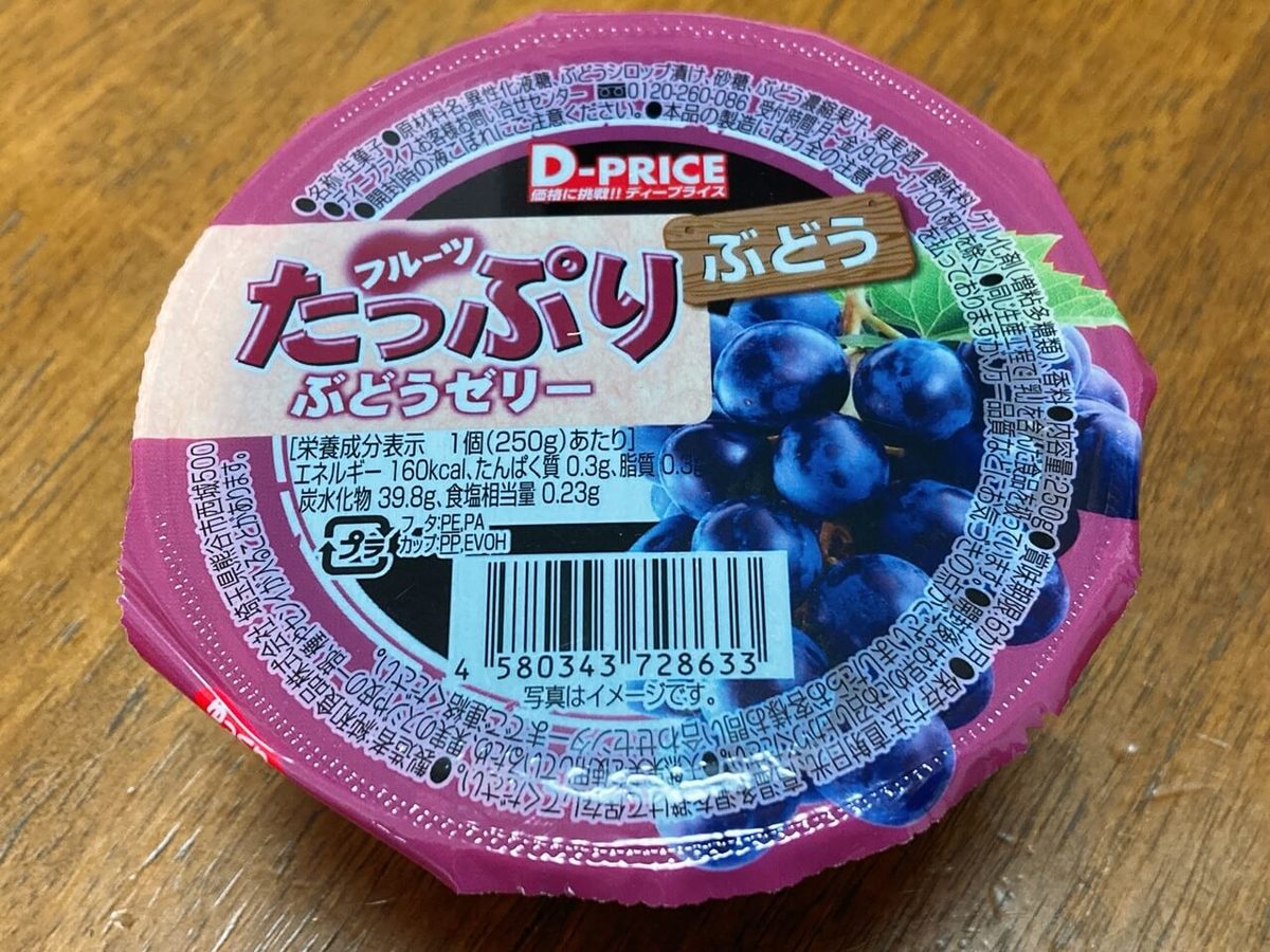 再びたらみとの比較になりますが、一応言っておくとたらみのアンチじゃないのであしからず。 さて、Dプライスのたっぷりゼリーは250gで、たらみより内容量が多いのも特徴です!