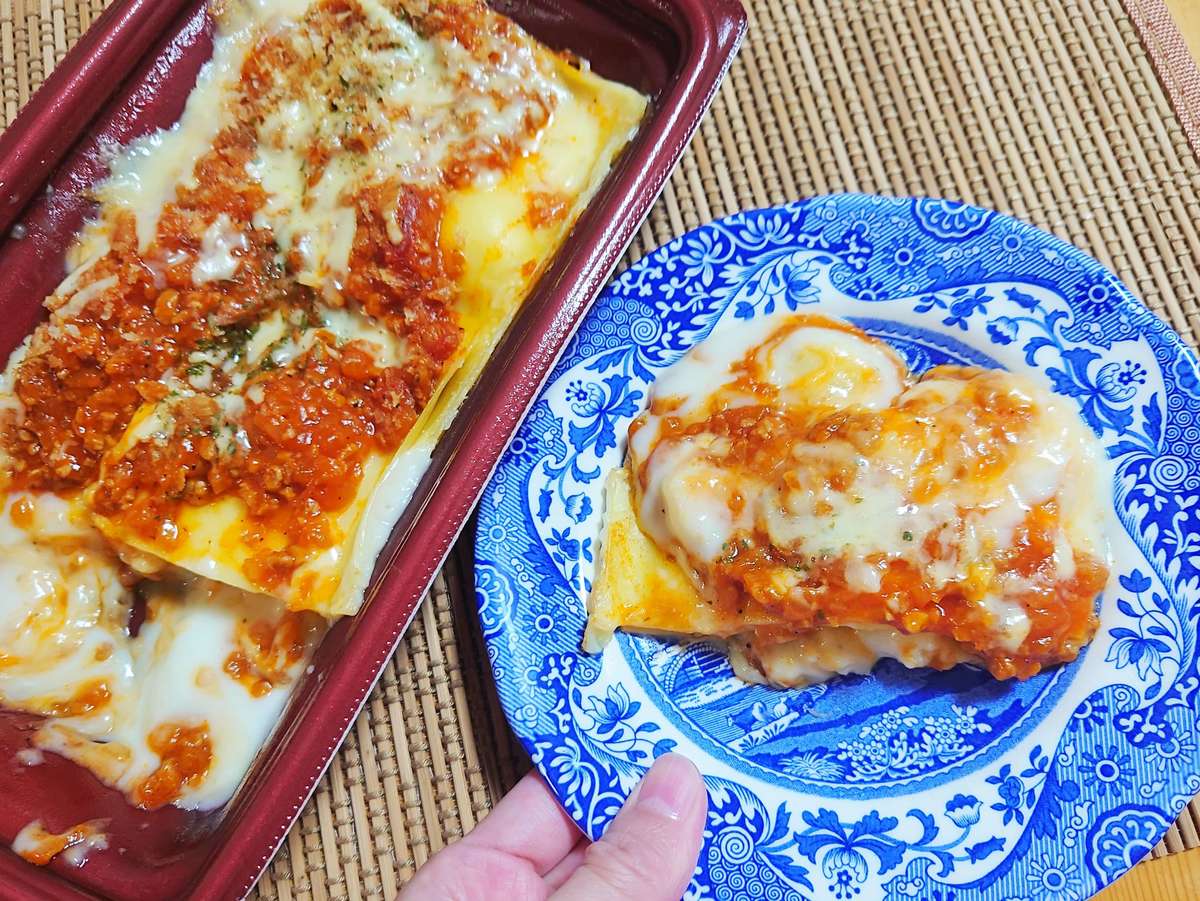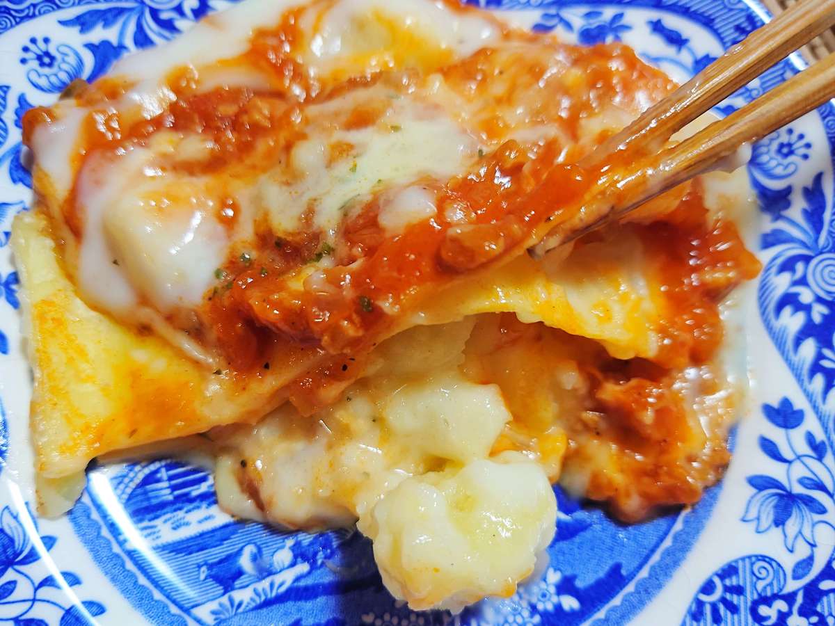 ラザニアのパスタシートが2枚、その下からジャガイモがゴロゴロ出てきました。
