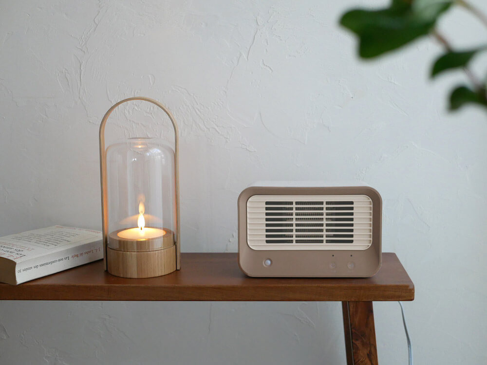 2色のバイカラーデザインの人感センサー付「ミニセラミックヒーター」。