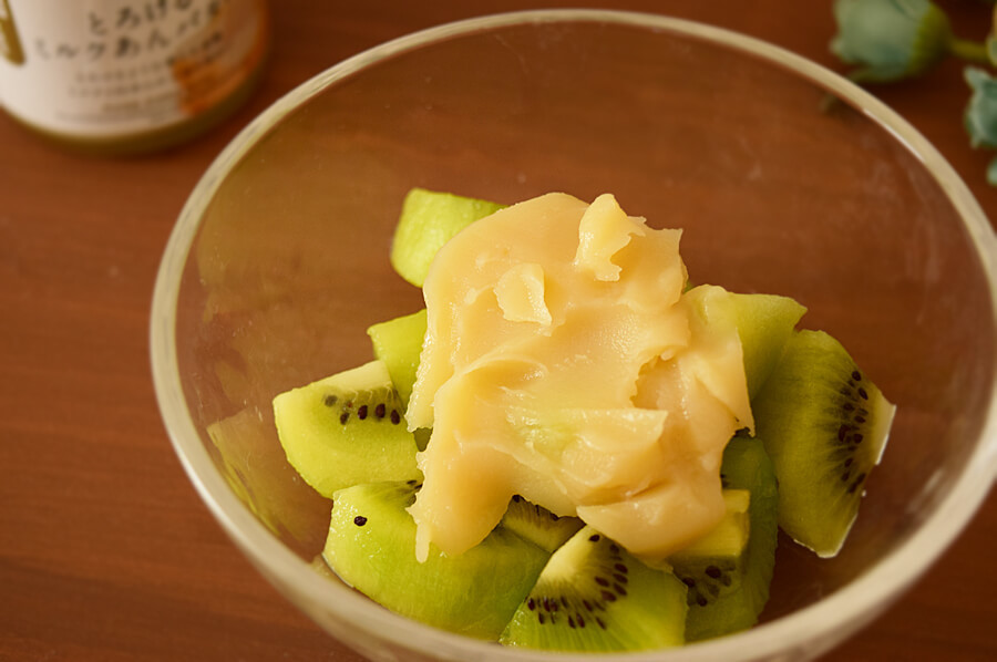 「とろけるミルクあんバター」をフルーツに塗ってみたが……