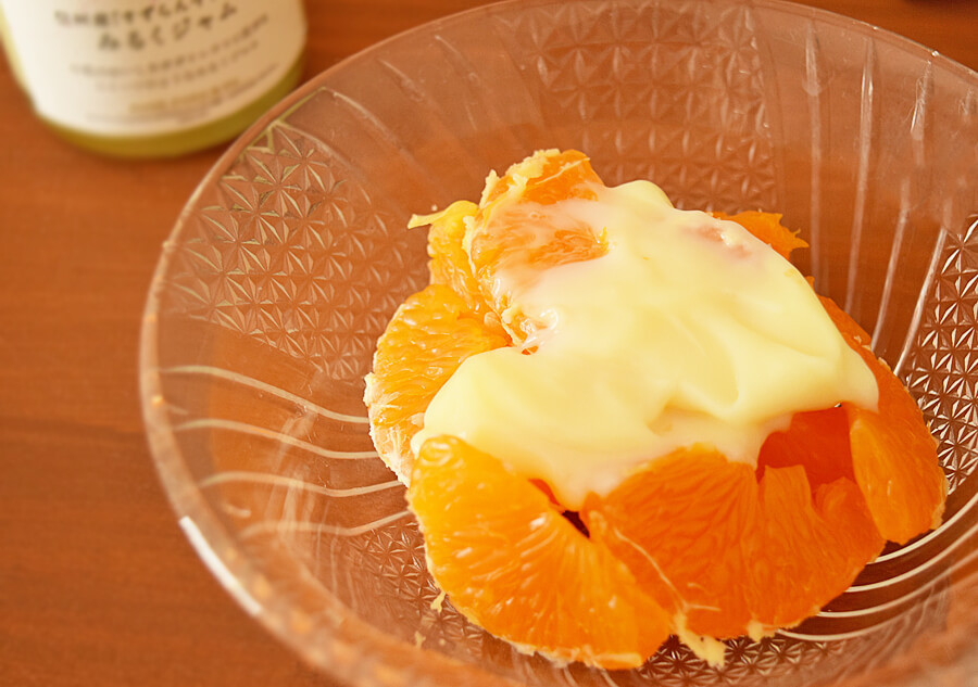 「信州産 すずらん牛乳使用 みるくジャム」をみかんに塗ってみた
