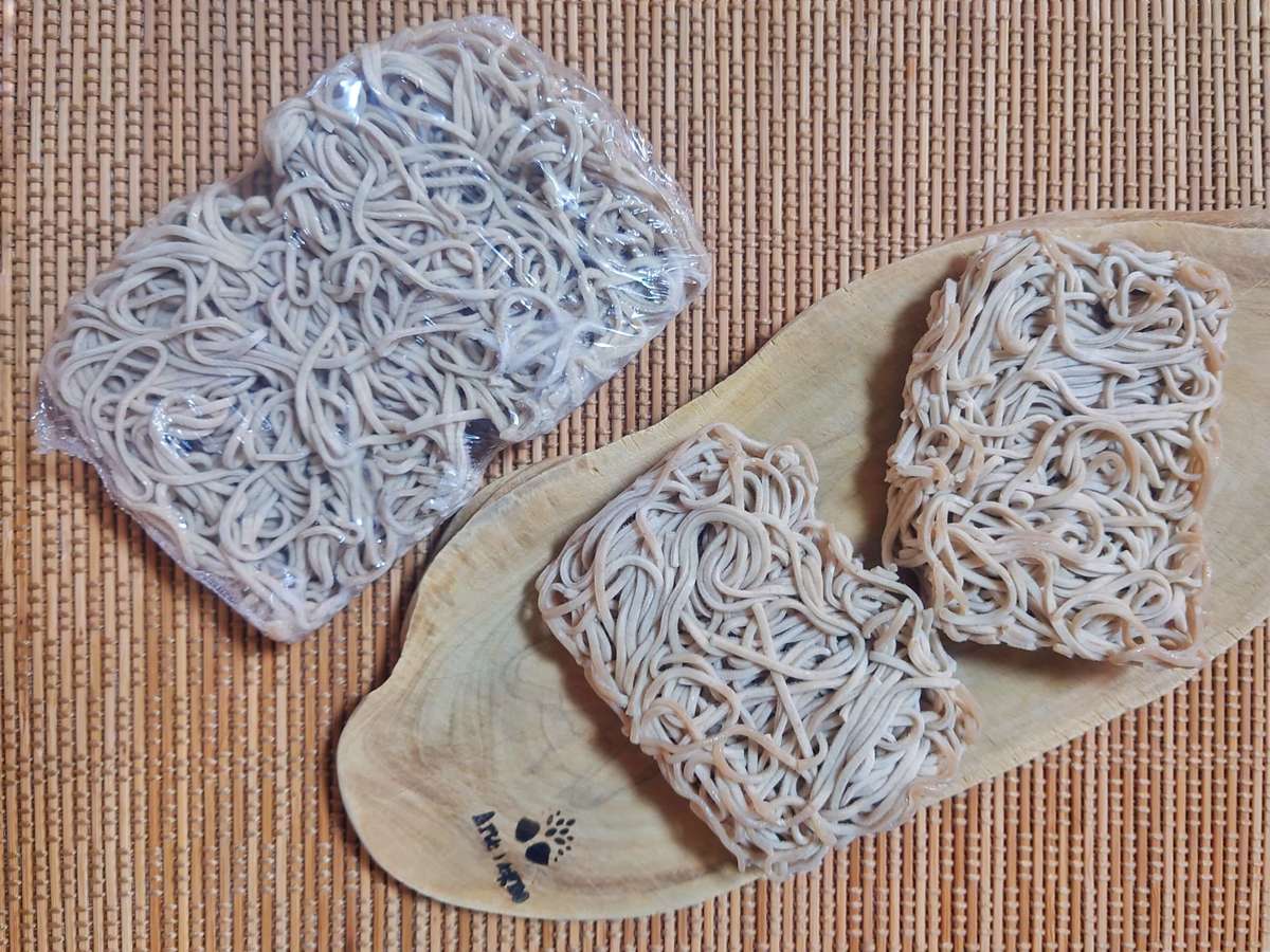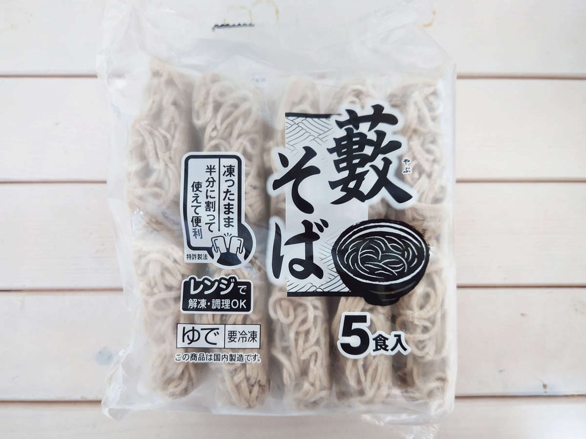 あると便利なのが冷凍麺類。シマダヤのそばは5食入りです。