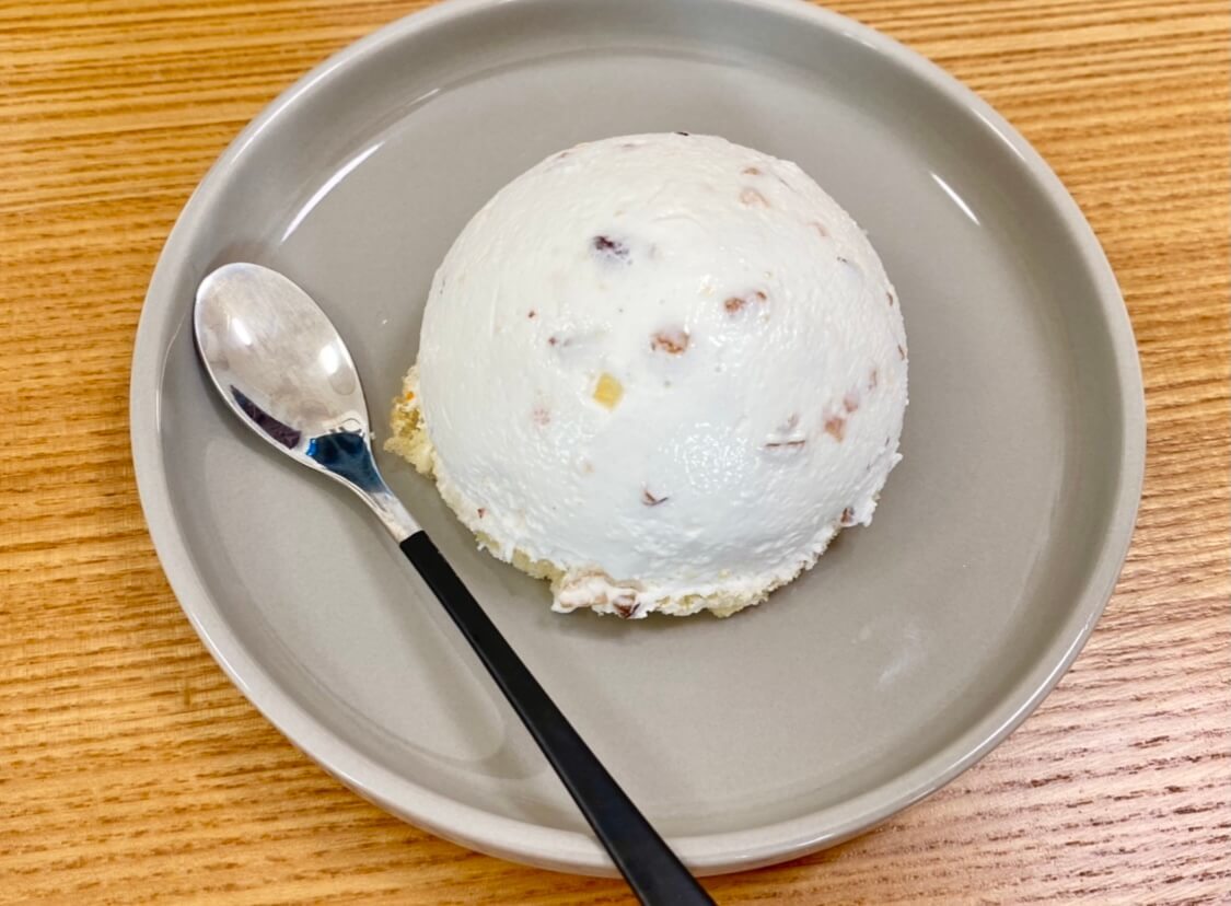 真っ白で綺麗なクリームの中には、ドライフルーツやアーモンドがぎっしりと詰まっていました♡