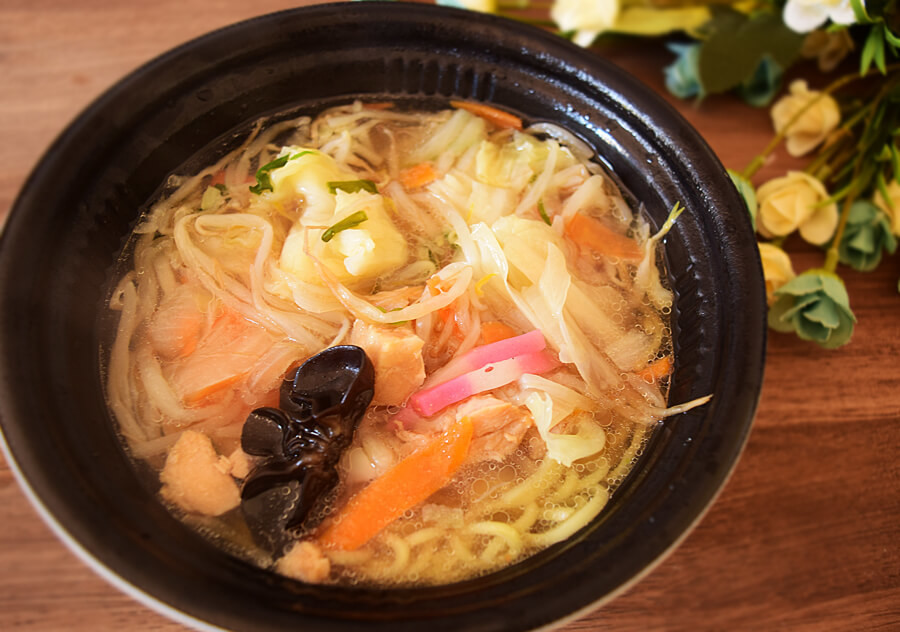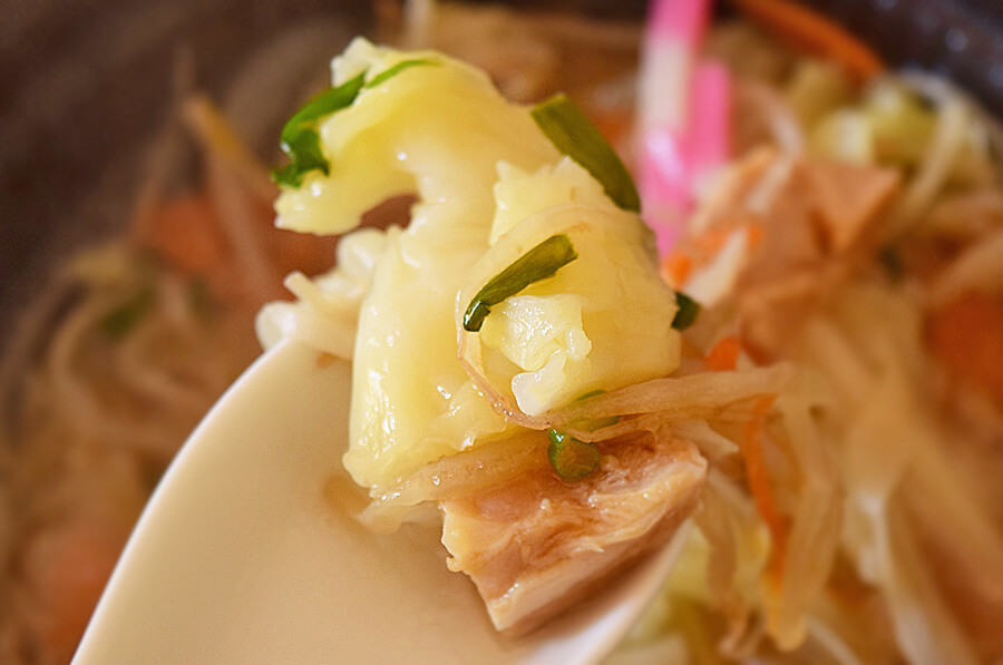 チャーシュー麺と同様にやや薄めのスープですが、野菜や鶏肉の味わいが染み込んでいて身体にやさしそうでした。