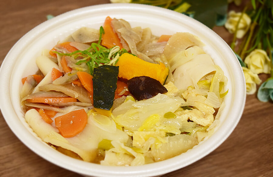 のっぺりしたほうとう。もちもちした食感があり、食べ応えがありました。かぼちゃもほっくりしていて、寒さが厳しい季節に食べるとほっこりとした気持ちに。