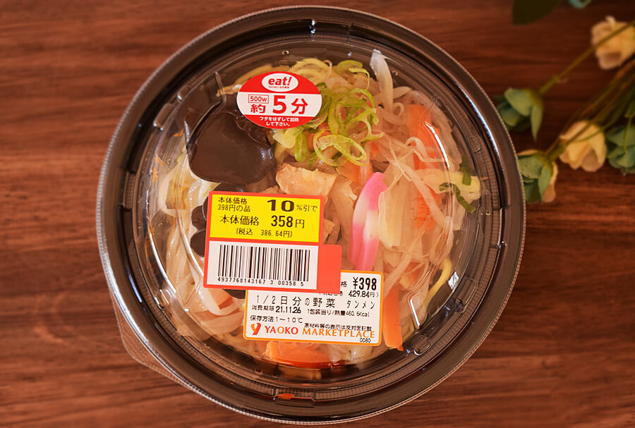 ヤオコー「1/2日分の野菜 タンメン」通常価格:429円(税込)の正直レビュー