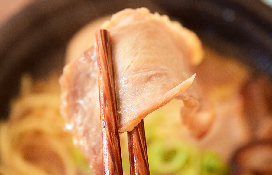 ……ここまでは、特筆すべきようなこともありませんでしたが、自家製チャーシューのクオリティが突き抜けてます……!ジューシーで口の中に入れるとろけるようなやわらかさ。