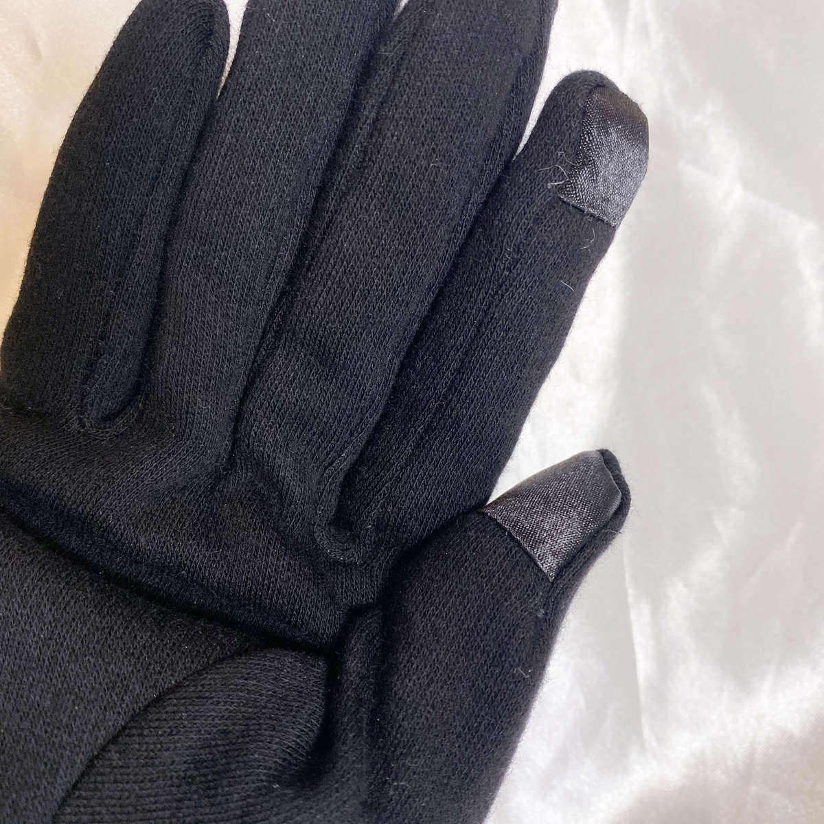 「くるみボタンスマホ対応手袋」は、親指と人差指にスマホ操作可能な生地。