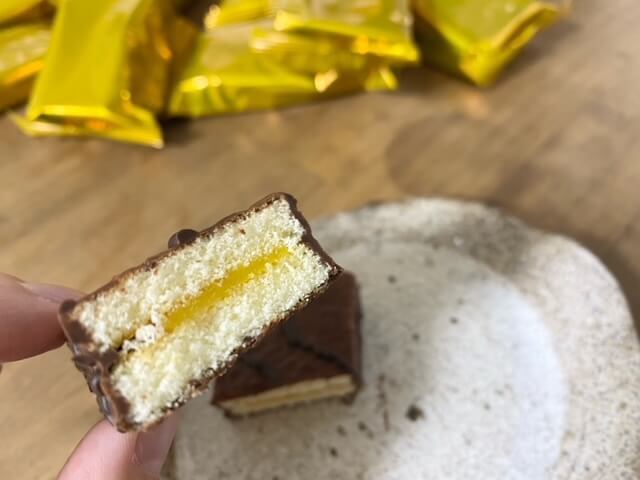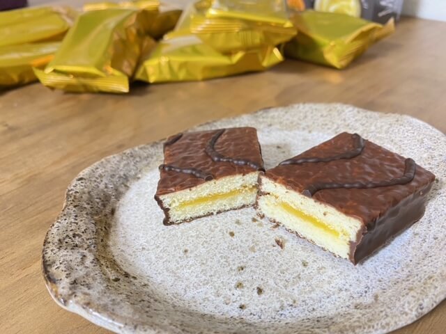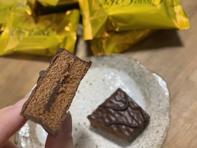 コーティングされたチョコレートのほどよい触感と、しっとりとしたスポンジ、中に入っているチョコレートの層が合わさり、カカオを思う存分楽しめます。