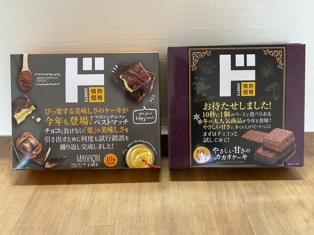 カカオケーキとマロンケーキは、1個約32円というまさに情熱価格!洋菓子店まではいきませんが、甘さや質感は価格以上に満足できました。