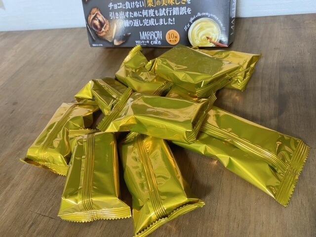 内容量はマロンケーキもカカオケーキ同様、10個入りで個包装されています。