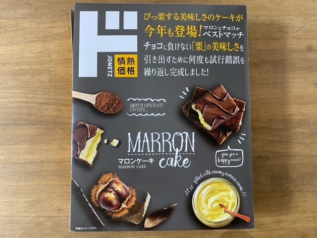 栗とチョコレートの組み合わせは、なかなかイメージしにくいですよね。でも、パッケージには「びっ栗するおいしさのケーキ」のダジャレのような、キャッチコピーが♪