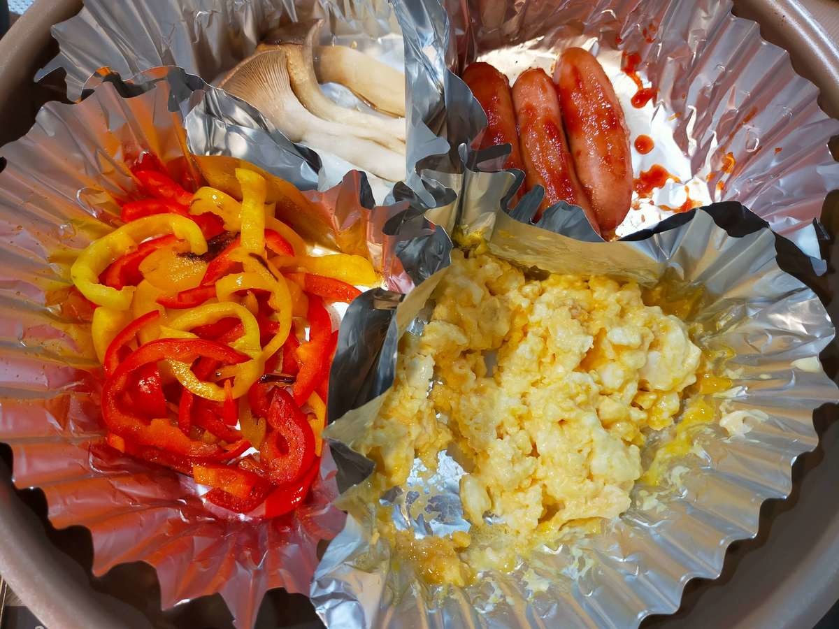 分割フライパンホイルにくっつきにくいように加工しているので、いり卵もストレスなく作れました。