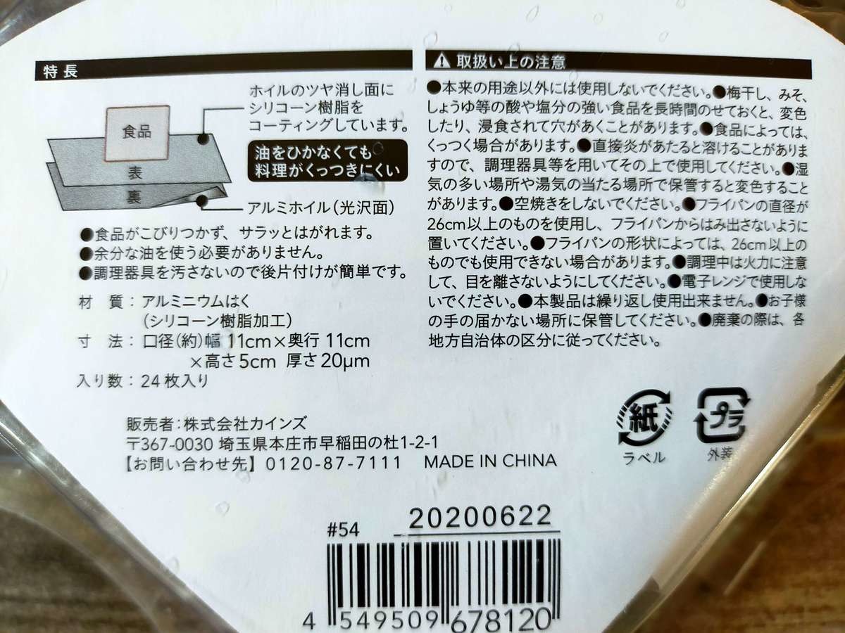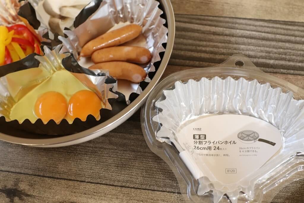 これじゃいかん!お弁当作りを何とか楽しつつおいしく作れないものかと思っていたら、カインズに良いものがありました。その名も「分割フライパンホイル」!