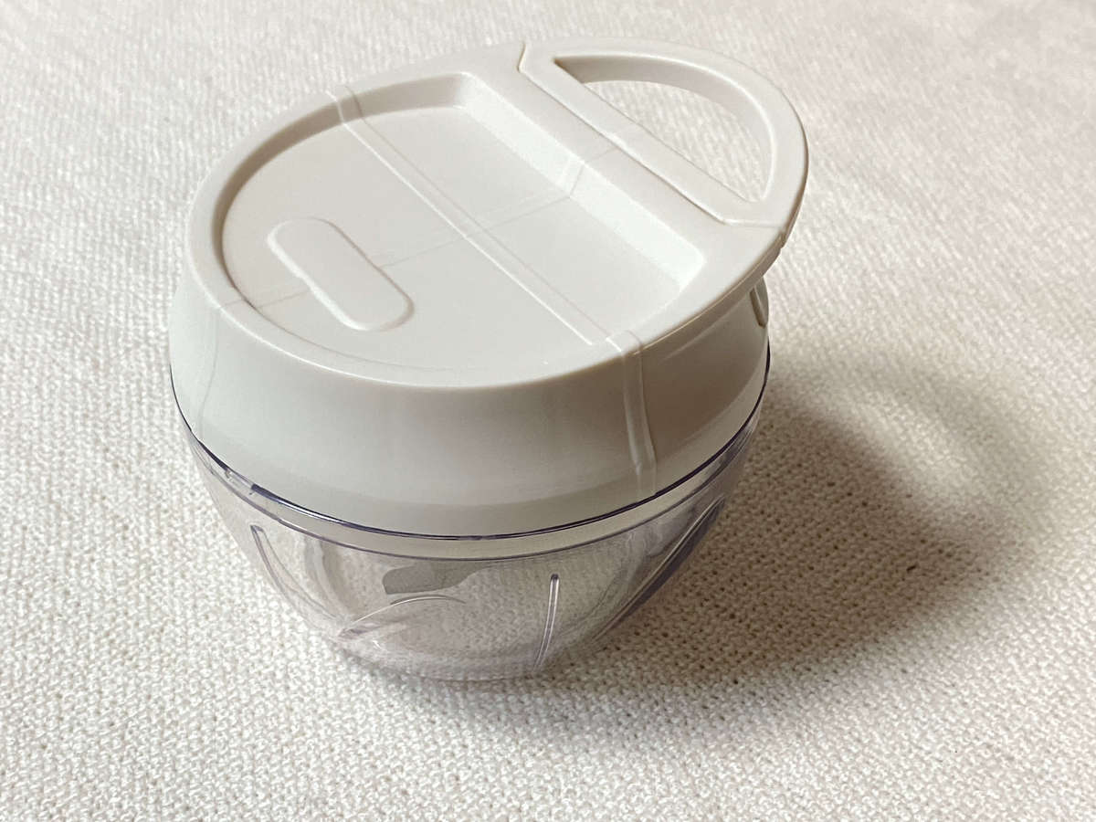 ミックスベジタブルといえば、1cm角のみじん切りが定番ですよね?でもわざわざ包丁でみじん切りにするのは正直手間がかかります。そこでオススメなのが3COINSのハンディーチョッパーです。