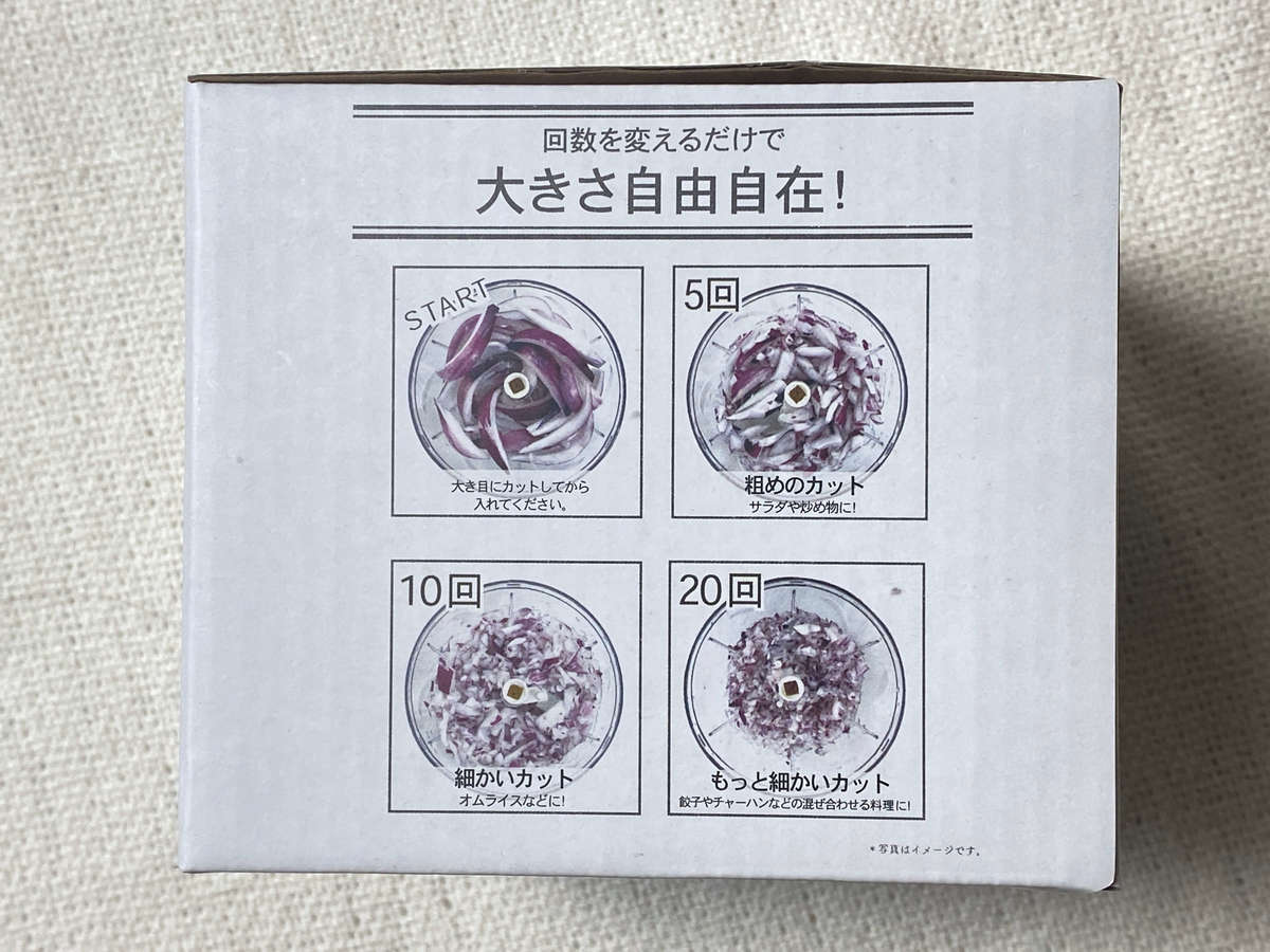 ハンドルを引く回数で、みじん切りの大きさを変えられるのもポイント。例えば、野菜が苦手なお子さん向けには、ハンドルをたくさん引っ張って野菜を細くすると、もしかしたらバレずに食べてくれるかもしれませんよ♪