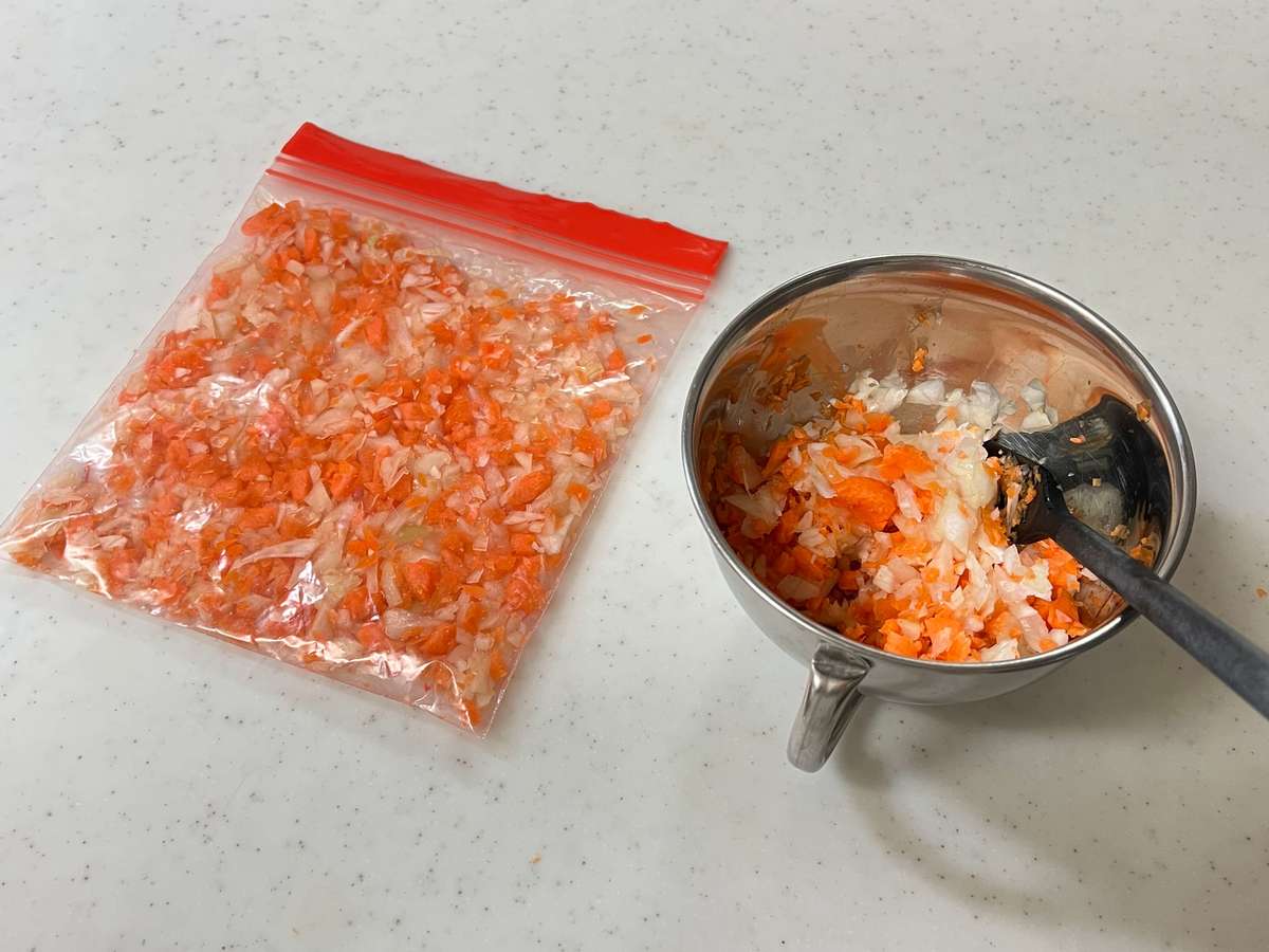 自家製冷凍食品の中でも、出番が多いのが「ミックスベジタブル」です。薄く冷凍したひき肉とミックスベジタブルの組み合わせは最強!