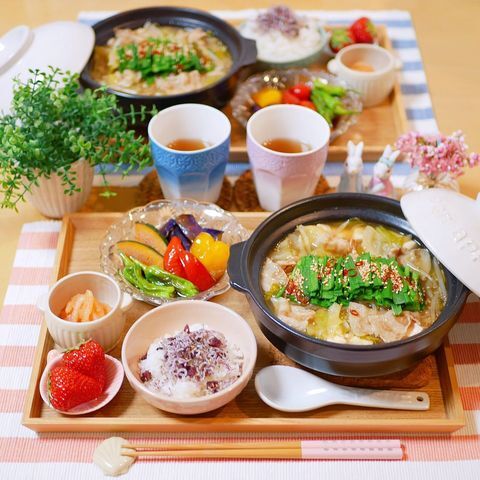ピリ辛のキムチとまろやかな豆乳が絶妙にマッチした豆乳鍋です。スープが余ったら、ご飯とチーズをプラスしてチーズリゾット風にしてしめるのもおすすめですよ。