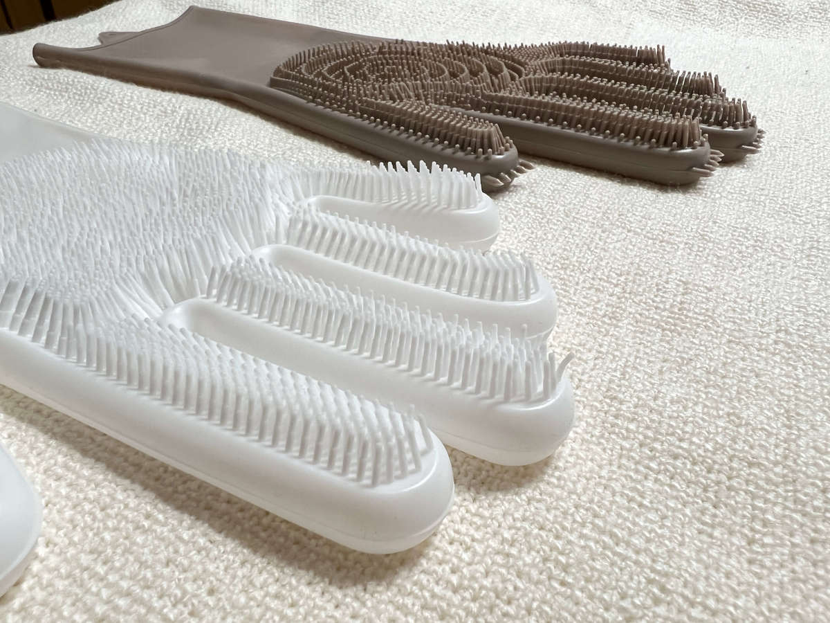 そんなシリコーンたわしの機能も備わった、さらに上をいくのが、このシリコーンブラシ手袋です。
