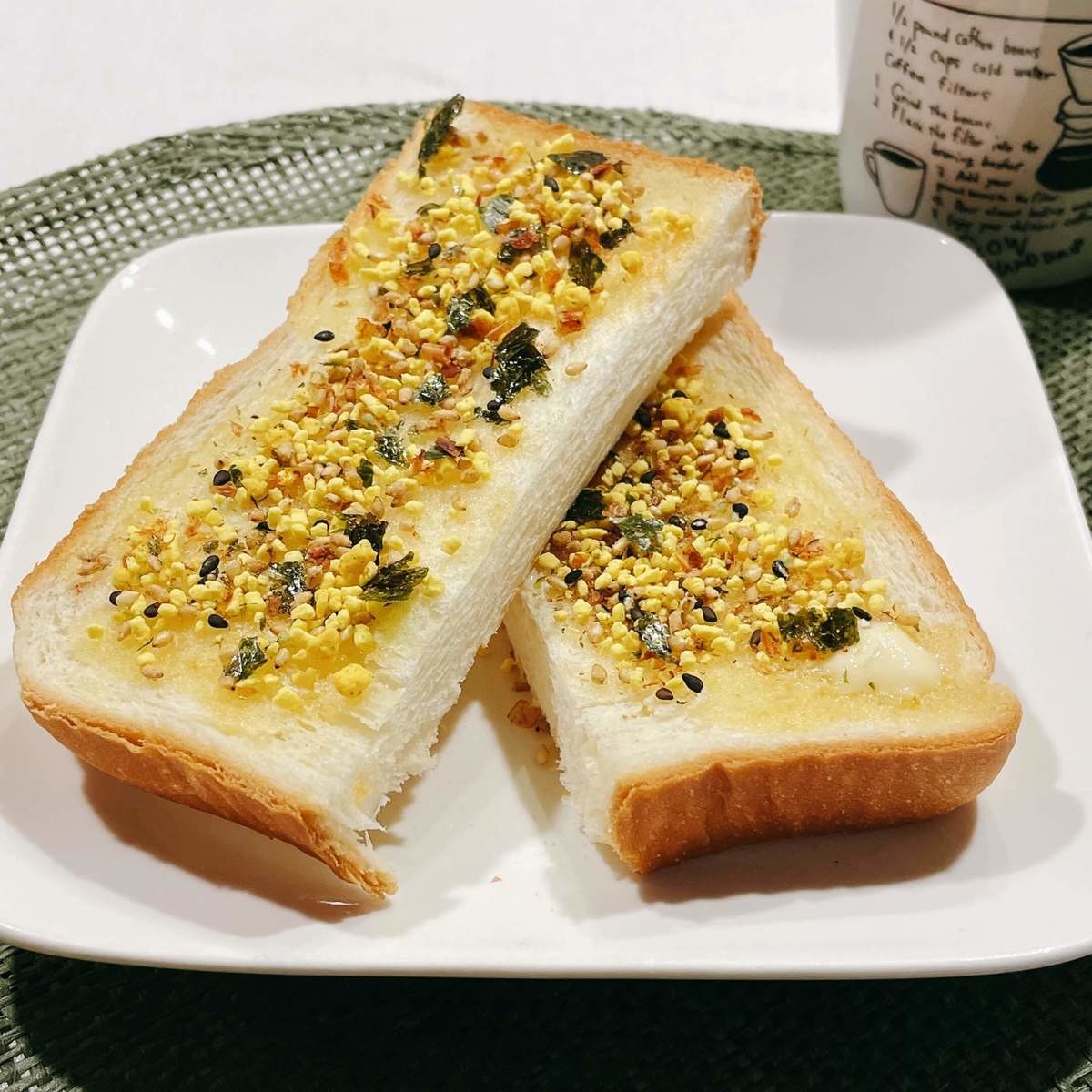 パパっとふりふりたまごをかけるだけで一気に食パンが和風のテイストに変わりますよ。