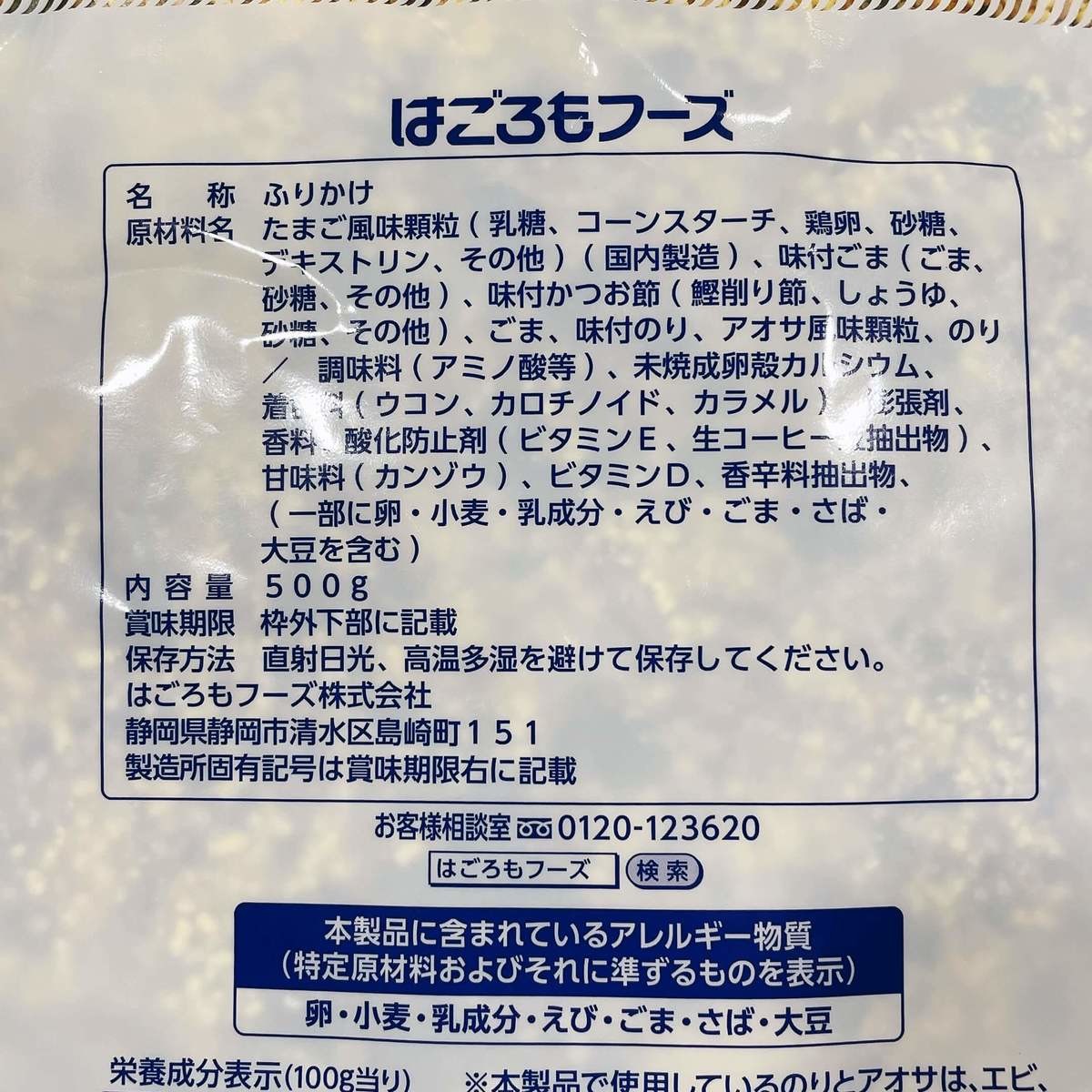業務スーパーで販売されているパパッとふりふりたまごは、税込718円で500gと普通のふりかけに比べて値段も量もお得でコスパに優れた商品です!