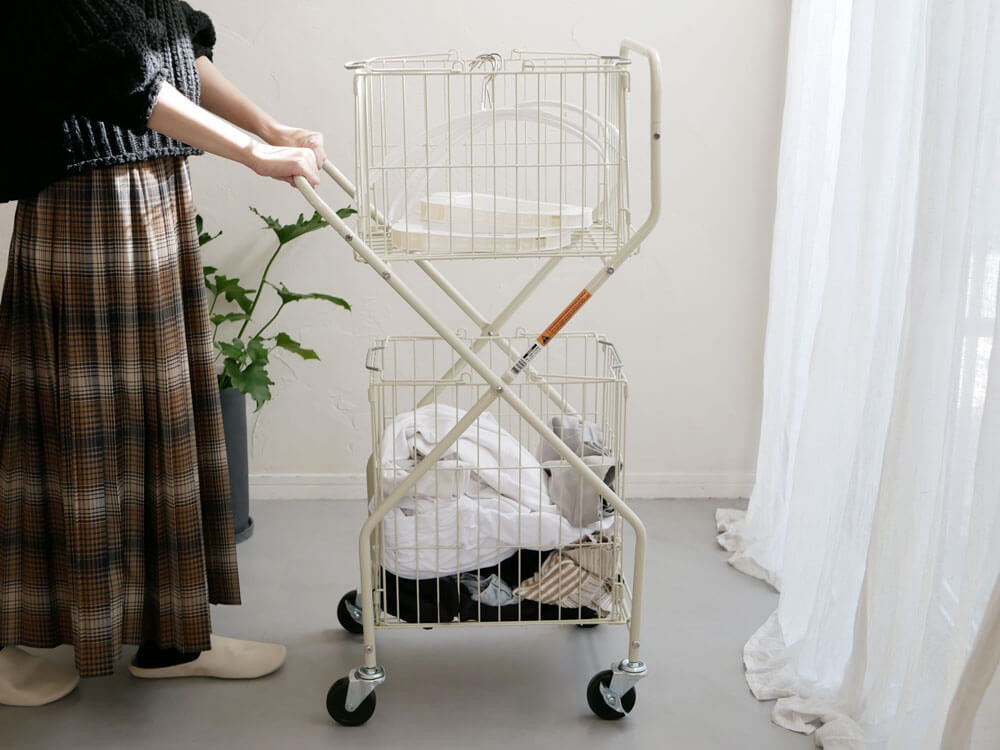 アメリカのランドリー、オフィスでの書類移動時に使われているトローリーを、一般家庭サイズに変化させた「ランドリー トローリー」。洗面、キッチン周り、衣類や趣味のグッズなどを小洒落に魅せてくれます。
