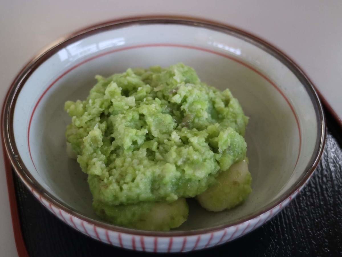 ずんだあんは、枝豆を使った優しい甘みのあるあんです。枝豆が原料ですので、筋肉のもととなる「たんぱく質」を含むのも特徴です。