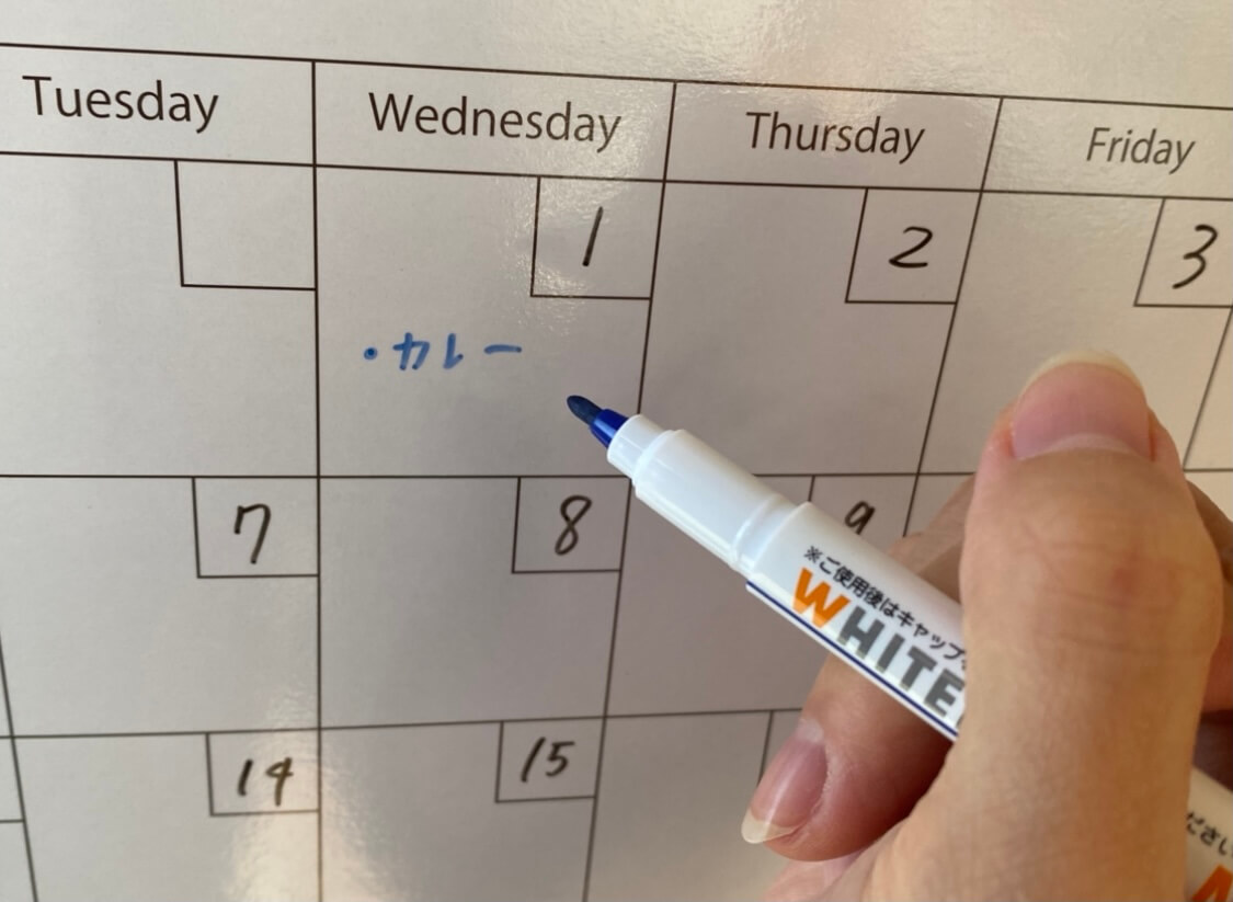 ホワイトボード用のペンで書いて消してを繰り返せば、毎月と言わず何年も使用できてコスパ抜群♪ぜひ、ご家庭にひとつ用意してみてはいかがでしょうか?
