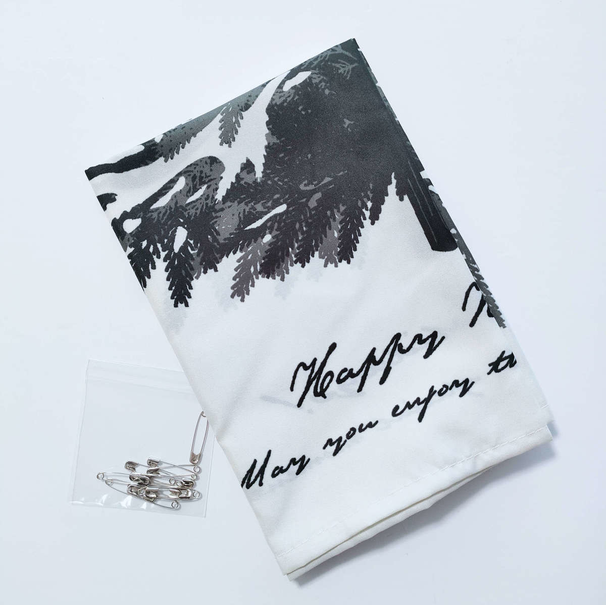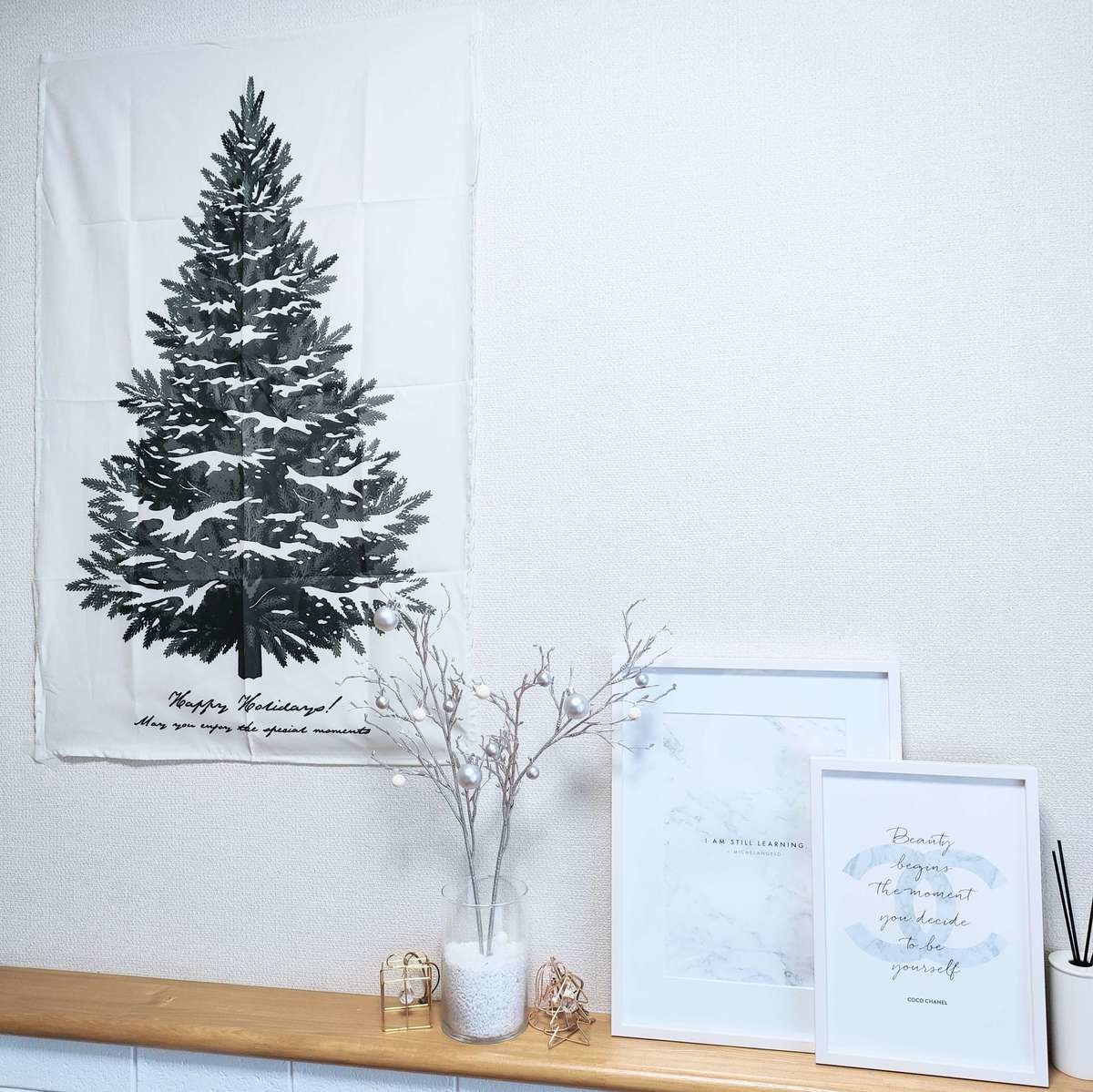 カラフルなアイテムが多い中、モノトーンのクリスマスツリーデザインのタペストリーは珍しいですよね。