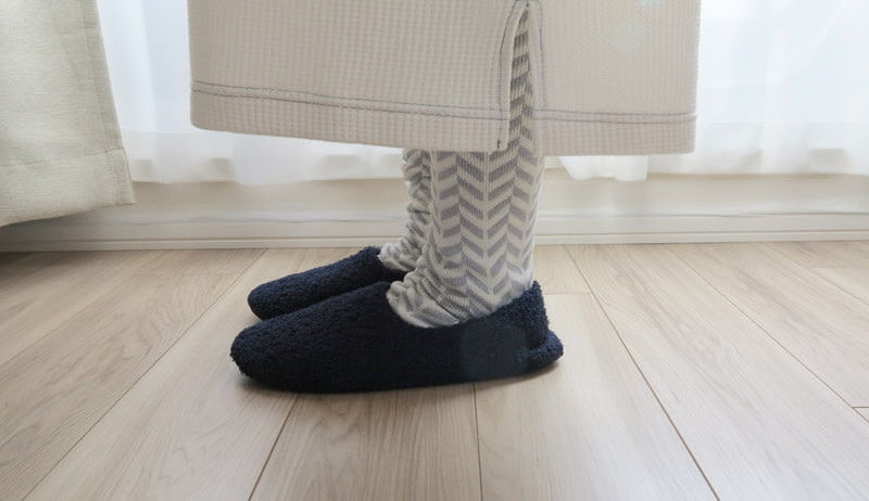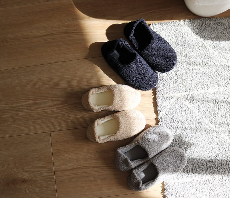 またお風呂上がりも湯冷めする前にもこもこスリッパを履いておけば、ベッドに入るまで足先ぬくぬくをキープ。