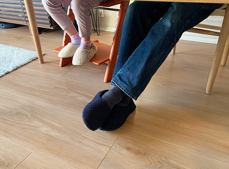 ユニセックスで履けるデザインなのも嬉しいポイントで、夫もふわふわの履き心地が気持ちいい様子。」