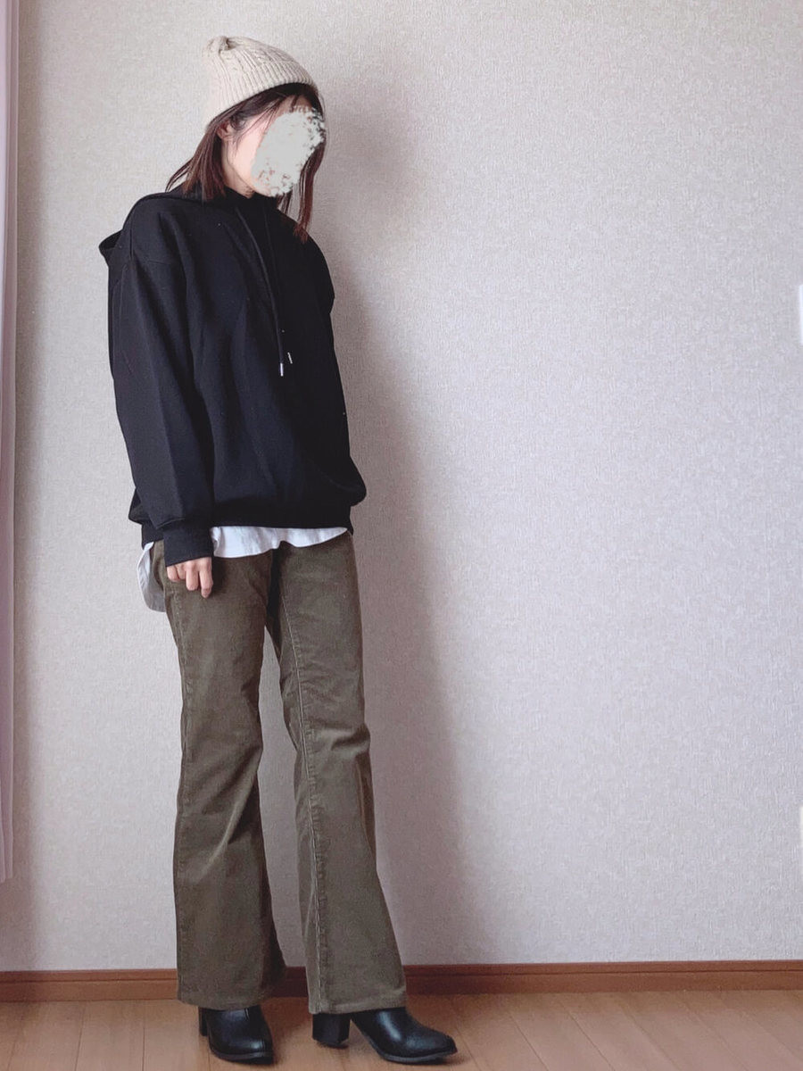 そこで今回は、GUで人気の「コーデュロイフレアパンツ」を使ったコーディネートをご紹介します。