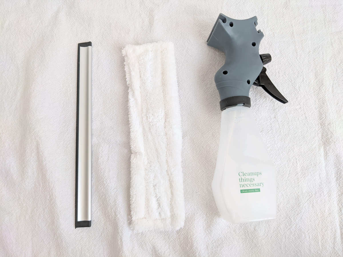 霧吹き、モップ、スクイージーの3点セットになっています。