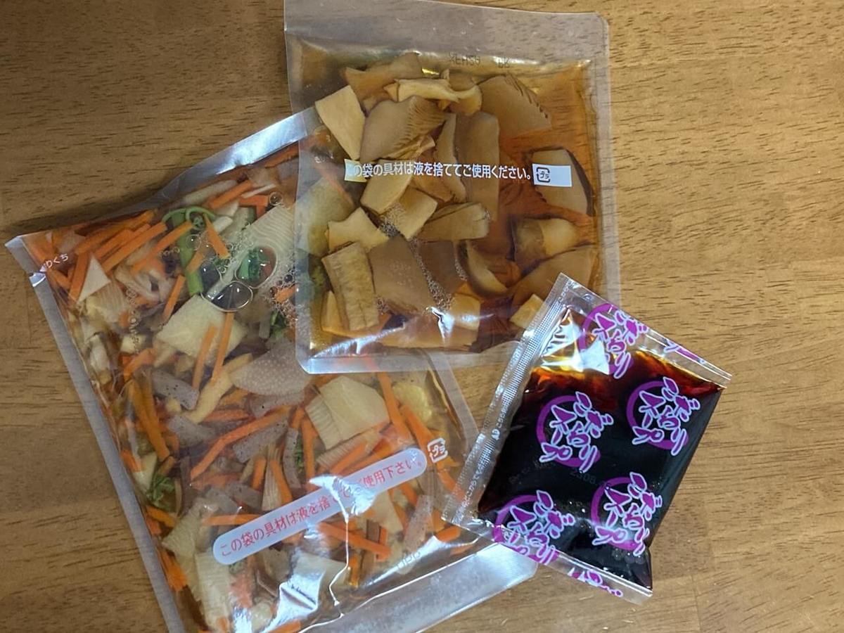 人参、竹の子、こんにゃく、れんこん、平茸、きくらげ、わらびと内容すごく充実してます!