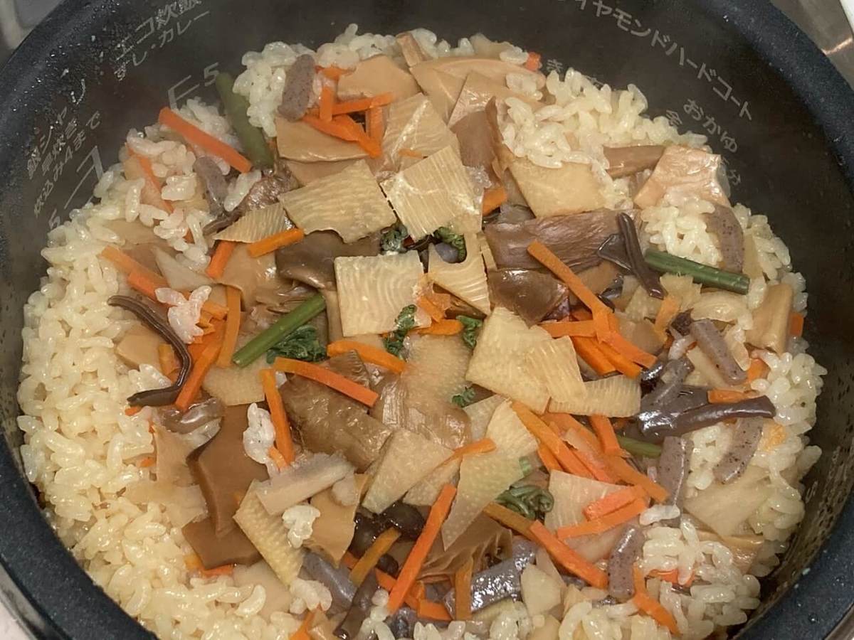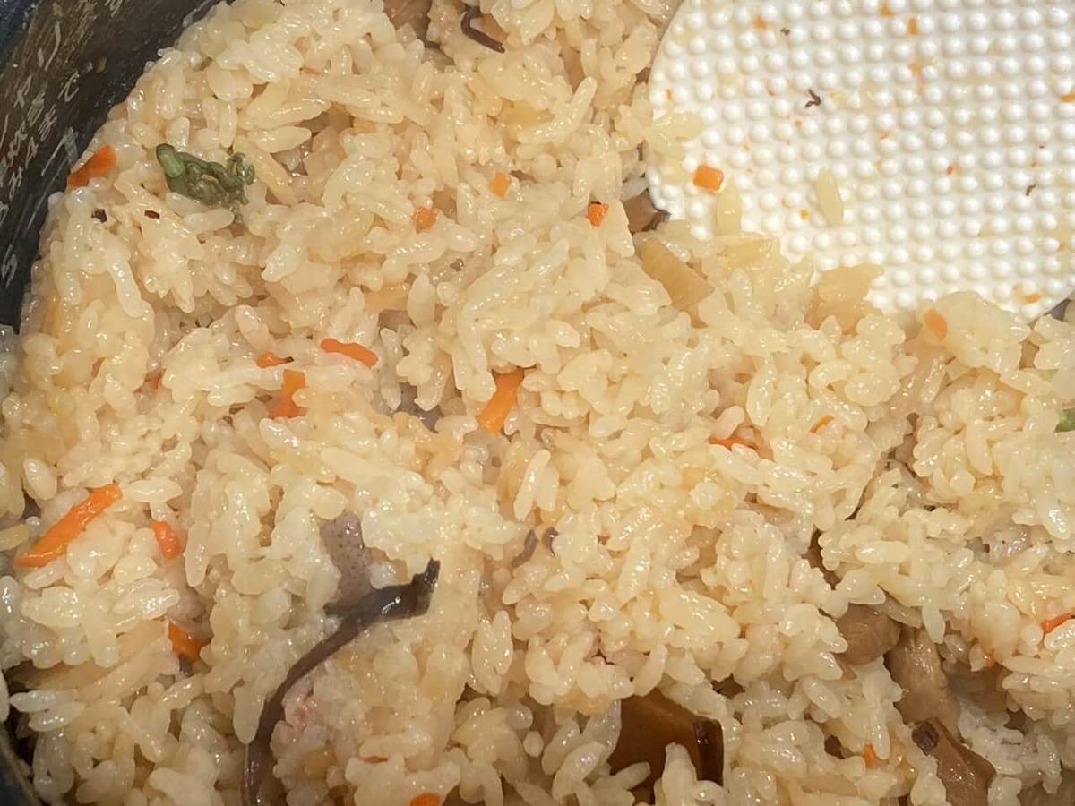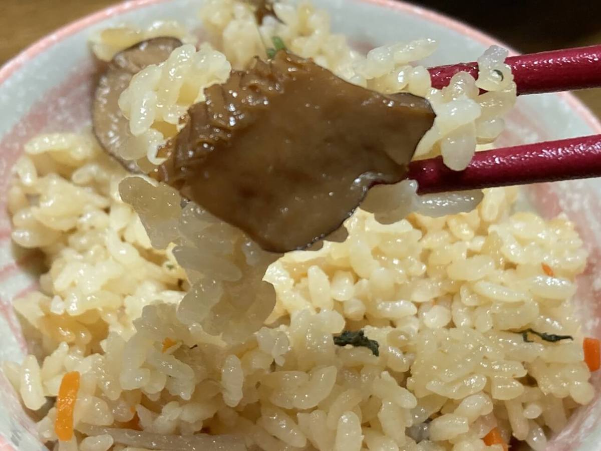 安定の炊き込みご飯のいい匂いが広がります。きのこ特有の香りも合わさって美味しそう~。