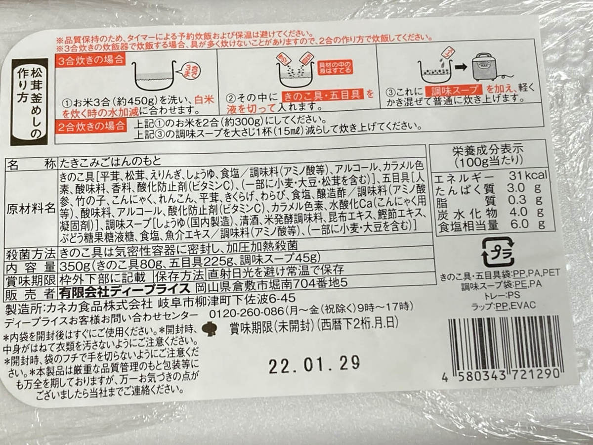 Dプライスの釜めしの素シリーズの何がすごいかって、内容量に多さに対して198円という高コスパっぷり!