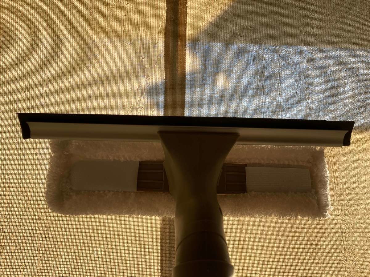 ③最後にスクイージーで水滴を落としたらお掃除完了!本体の持ち手から上に長さがあるので、高い所のお掃除も手が疲れにくかったです♪