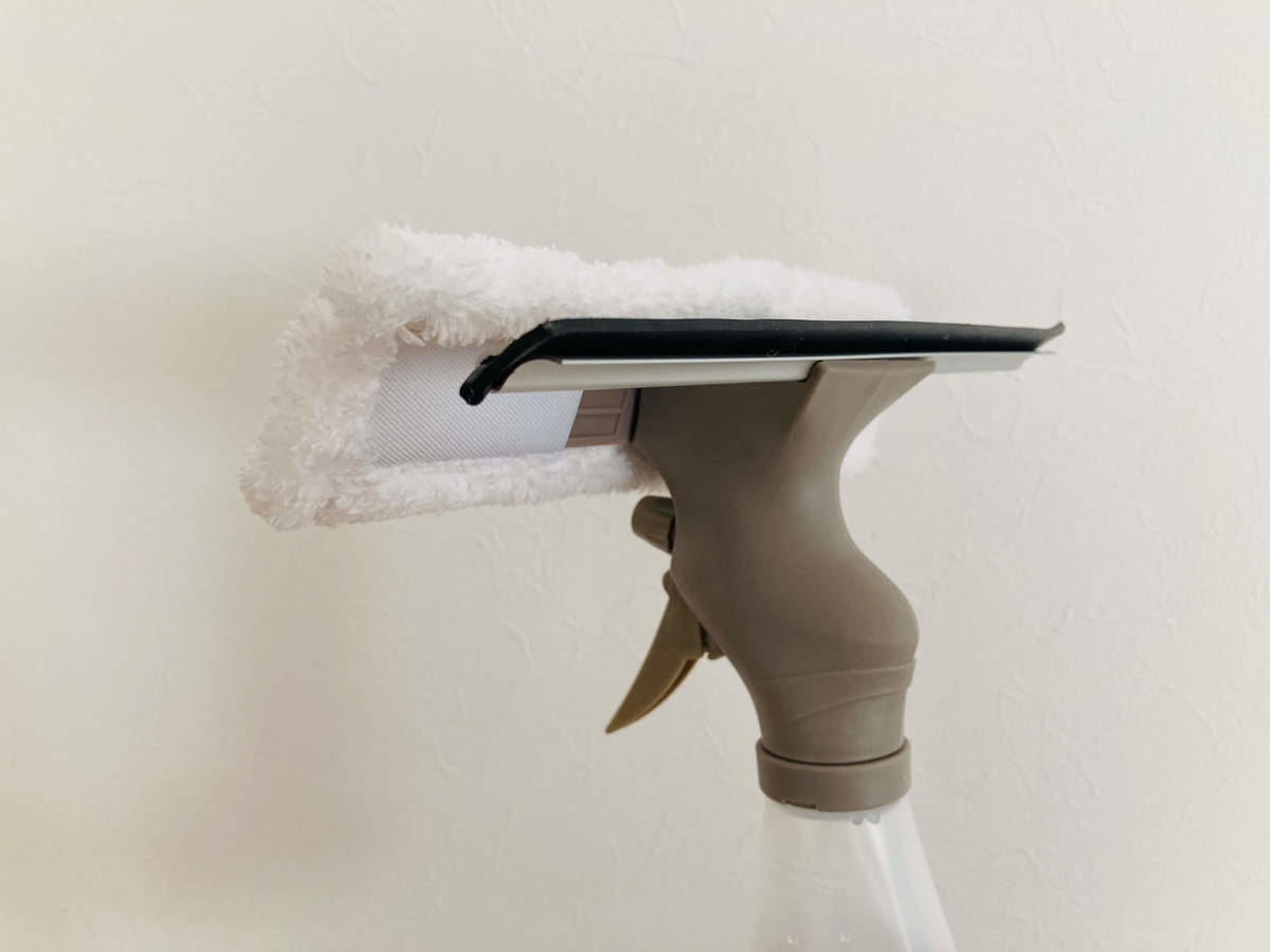 ここで使ってみて分かったことを1つ。外のガラスなど汚れが目立つ場合は、霧吹きの後にスクレーパーで水滴と汚れを落としておくのがおすすめ。手間は少し増えますが、モップが汚れにくかったです。