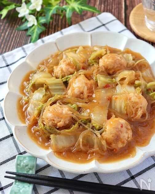 ③ゴロっと鶏団子とトロトロ白菜の麻婆春雨