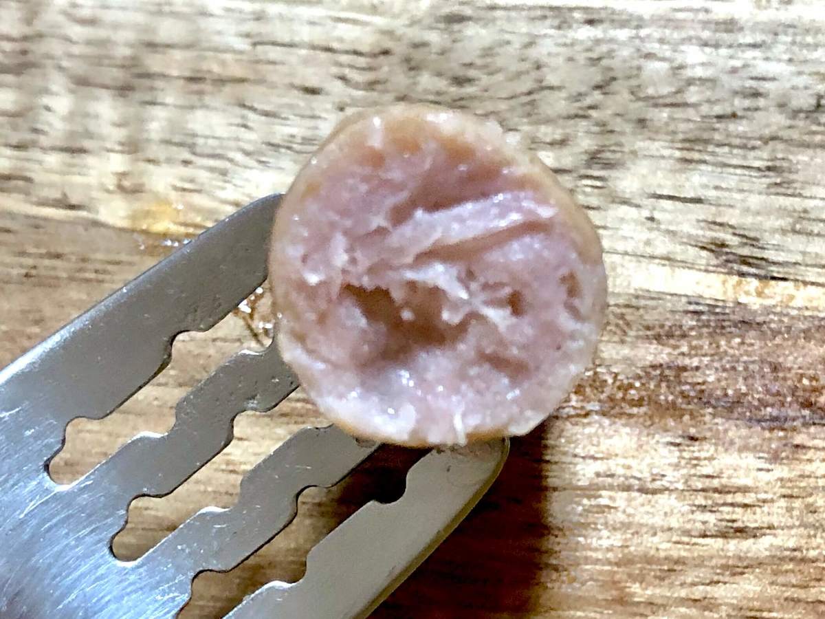 歯ごたえのあるソーセージです。みっちりお肉が詰まっていて、ボイルにして食べると、少しキュッキュっという歯ごたえが楽しめます。