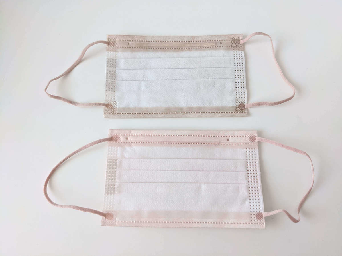 マスク紐は耳が痛くなりにくい平ゴムを使用。 1枚あたり約8円と高コスパですが、想像していたよりも厚みがあってしっかりしています。