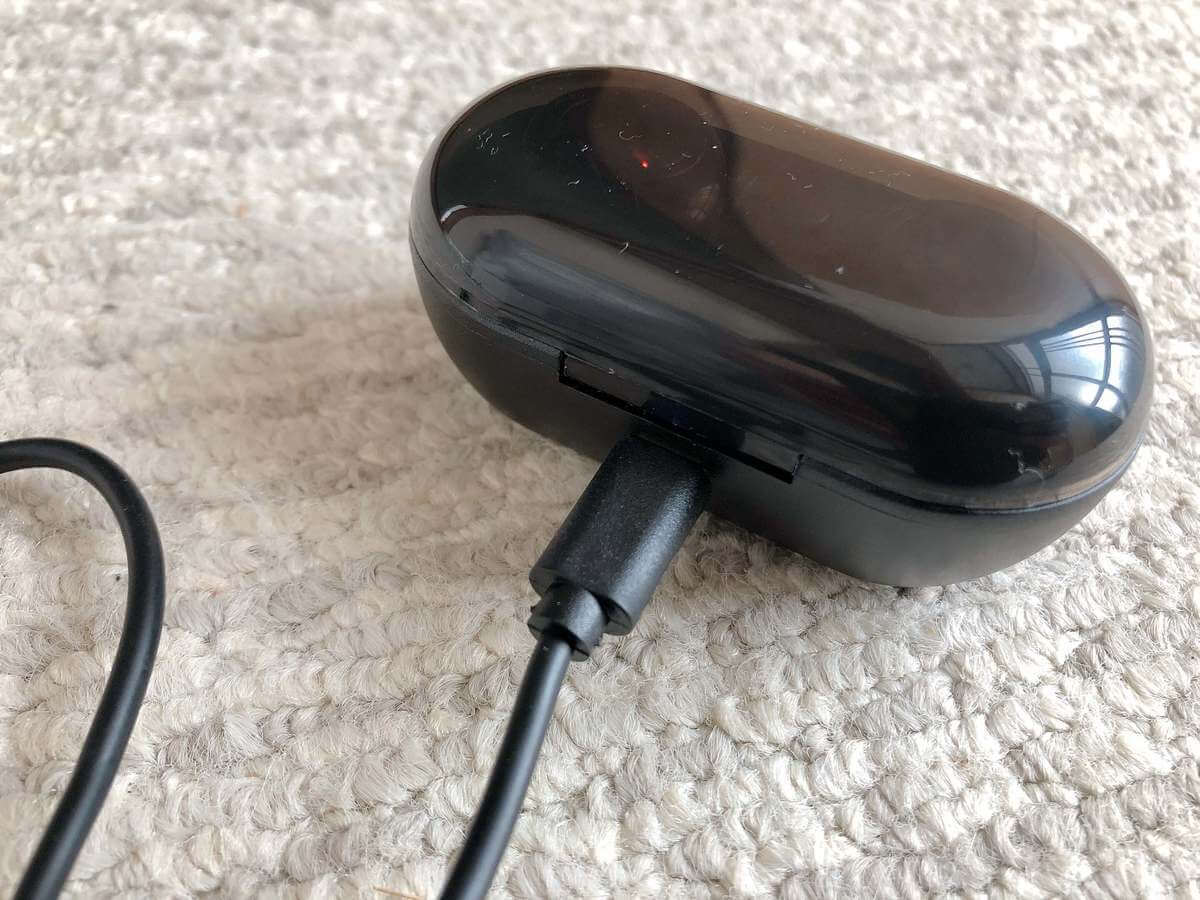 購入後は、充電ボックスの中に入っているイヤホンは入れたまま、付属の充電ケーブルを使用して充電を満タンにして下さい。