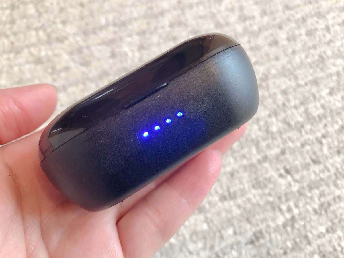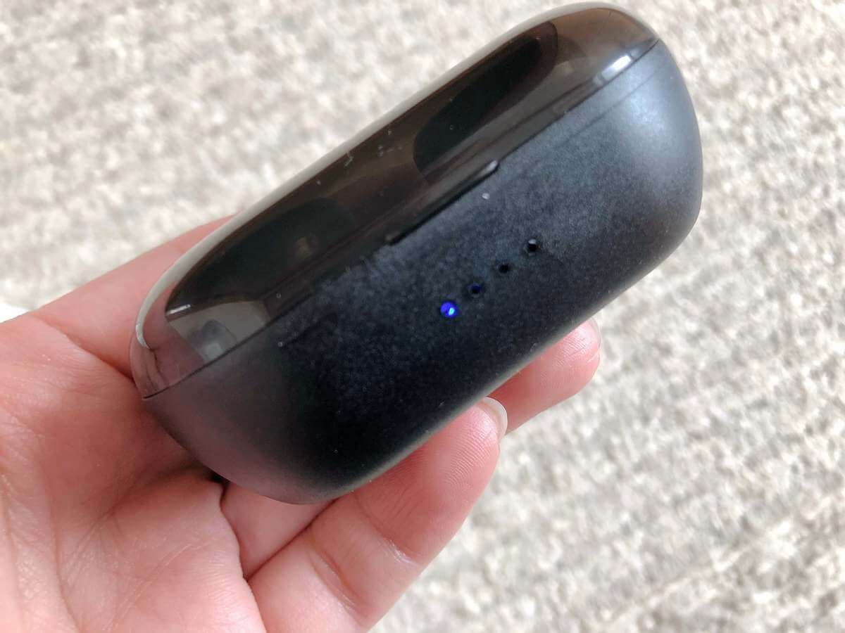 ケース充電は7回分のイヤホンの充電が可能です。1度満タンにするとかなり長持ちするので凄く助かります。
