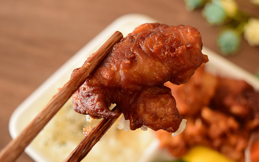 よくある普通の唐揚げかな?と思って食べてみると、クリスピーチキンのようにカリカリとしていて醤油の味わいが口の中いっぱいに広がっていきます。