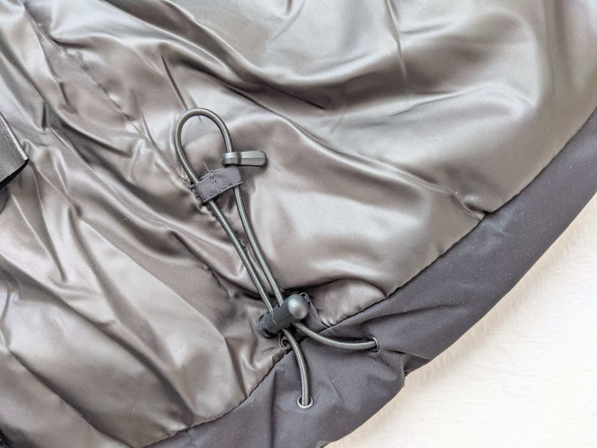 ダウンの裾も絞れます。 こんなに多機能なのに「3,900円で良いんですか!?」って聞きたくなるくらい充実の機能性です。