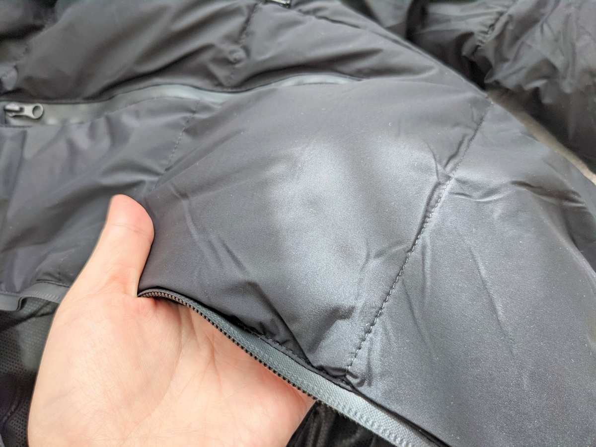 こちらのダウンは、針の突き刺しなどにより穴が開いてしまっても、自己修復するという特殊な生地を採用しています。 そのためダウンの吹き出しや空気抜けを防ぎ、暖かさをキープすることができるんです。
