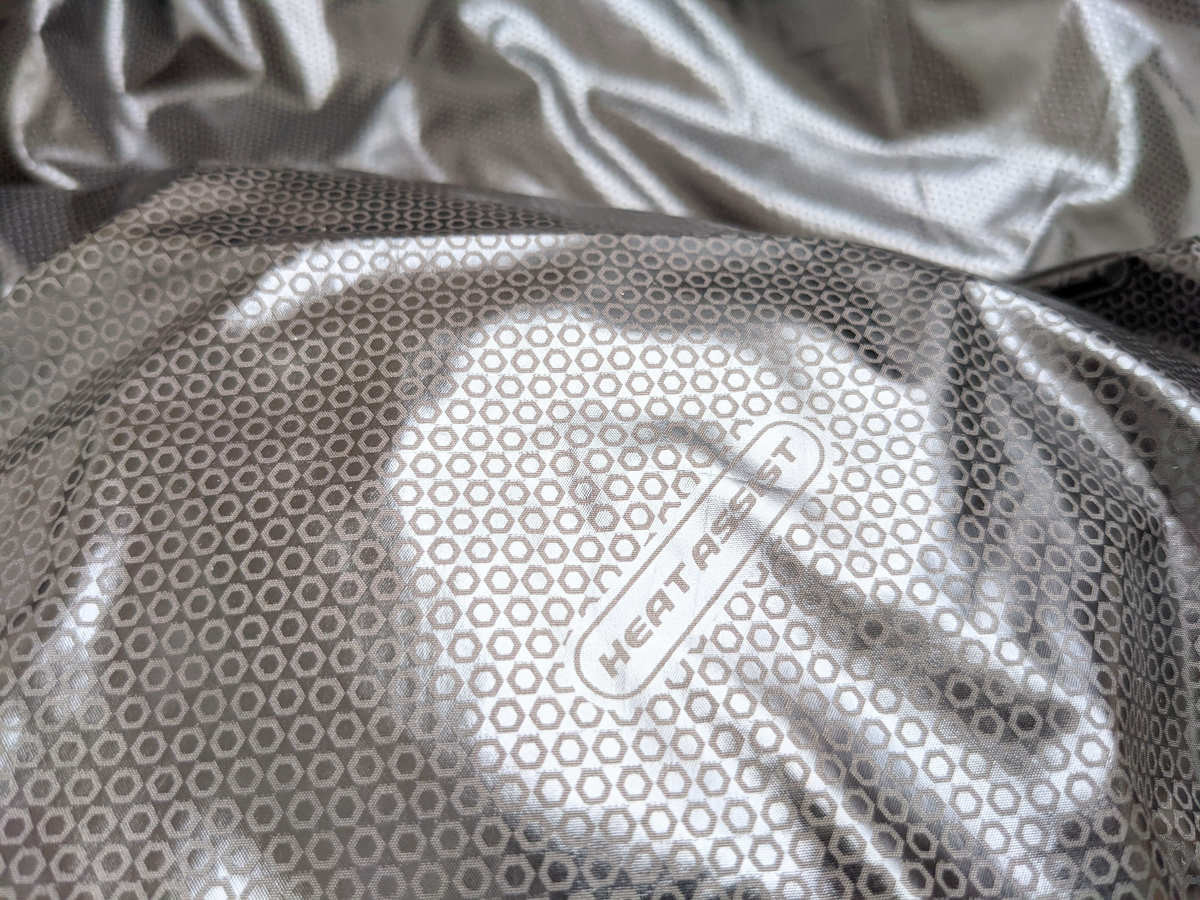 暖かさの秘密はまだあります。 裏地にブラックアルミを採用していて、通常のシルバープリントと比べると1.5倍の保温力があるんだとか!